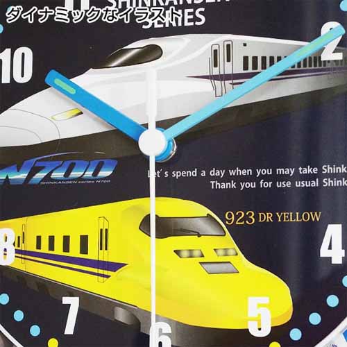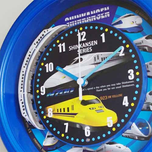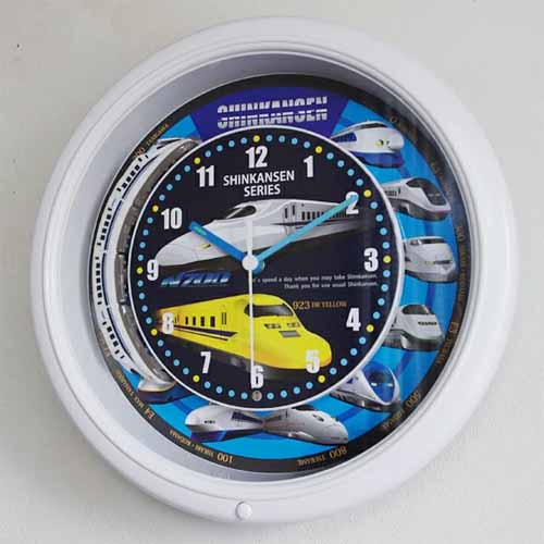 全国の新幹線が集結した文字盤デザインで、毎正時にN700系のミニチュアが文字盤を一周します。15種類の本格アナウンスが搭載され、時間によって音声が変わる仕様。掛け時計なので、子どもが手に取って壊してしまう心配もありません。