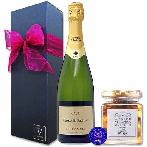 12か月以上の瓶内発酵によるきめ細かな泡と、青リンゴや柑橘を思わせる爽やかな香りが特徴の辛口カヴァ。程よい酸味とフレッシュな果実味がバランスよく広がります。牡蠣のオイル漬は複数フレーバーから選べ、ワインとの相性も抜群です。