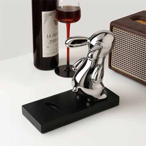 うさぎモチーフのメタルデザインで、ワインボトルを立てかけるだけでアートのような存在感を発揮。安定感もあり実用性も合わせ持っています。リビングやダイニングに置くだけで、空間を印象的に演出します。
