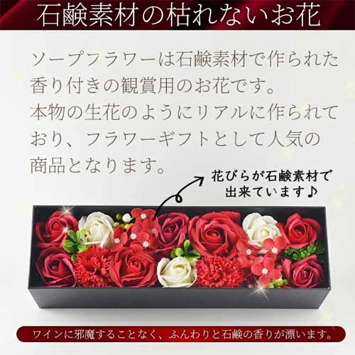 華やかなロゼワインは、見た目の美しさと飲みやすさから女性へのプレゼントに人気。さらにシャボンフラワーがセットになっていることで、飲んだ後も楽しめることが魅力です。母の日や誕生日など、気持ちをしっかり伝えたいシーンにぴったりです。