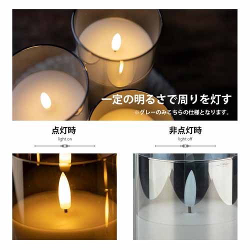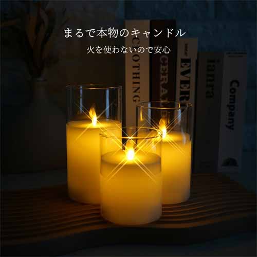 本物の炎のようなゆらぎを再現したLEDライトで、テーブルや寝室、ベランダでも活躍。リモコン操作やタイマー機能付きで使い勝手も良く、コードレスで場所を選びません。グラス入りのデザインが上品で、インテリアとしても楽しめます。