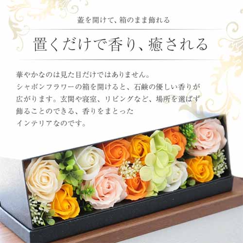 フルーティーで華やかな香りと、やわらかな口当たりが特徴のロゼシャンパン。ハーフボトルで飲みきりやすく、特別なひとときを演出します。シャボンローズはお手入れ不要で長く飾れる仕様。高級感のあるボックス入りで、開けた瞬間の高揚感も魅力です。