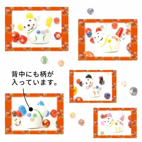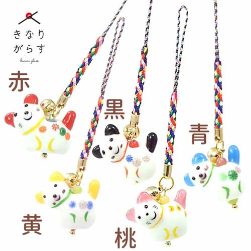 ころんと愛らしい犬張り子をモチーフにした「いぬ玉 根付」は、とんぼ玉のガラス細工で表現された和風ストラップ。鈴付きの根付タイプで、スマホやバッグ、財布などに取り付けて持ち歩くことができます。厄除けや魔除けの意味も込められた縁起物で、見ているだけで心が和む優しいデザイン。