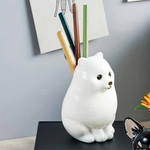 花瓶とペンスタンドを兼ねたユニークなデザインで、デスクやリビングに置くだけで可愛らしいアクセントに。豆しばやチワワ、ポメラニアンなど人気の犬種がそろっており、好みに合わせて選べます。一輪の花を飾るだけでも空間が華やぎ、インテリアとしても実用アイテムとしても優秀な一品。